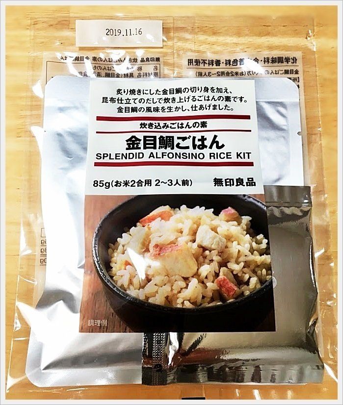 ママーリオさんが絶賛するのは、無印良品の「金目鯛ごはん」の炊き込みご飯の素です。2合分で390円(税込)とお手ごろ価格で、高級食材が楽しめる優秀食品だといいます。金目鯛は粉々になってしまいますが、香りがよくてうまみが広がり、家族そろって「リピート確定!」と盛り上がったそうです。