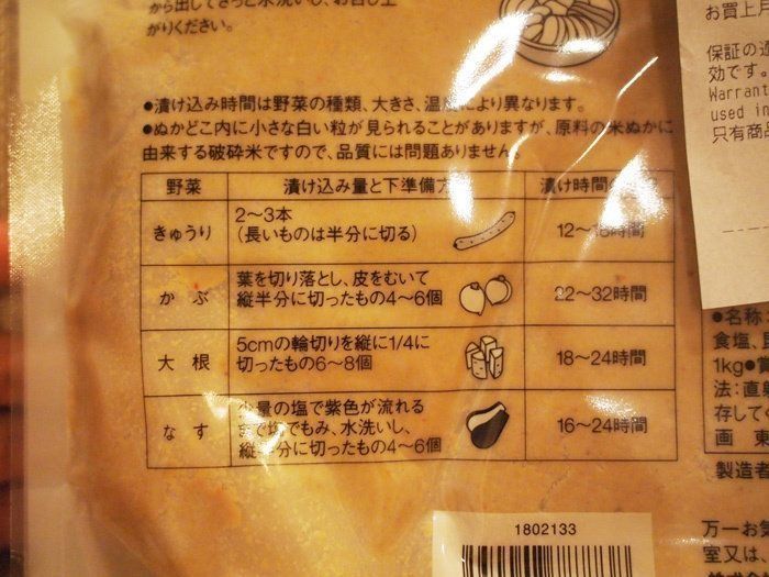 パッケージの裏側にはぬか漬けの時間もわかりやすく明記されています!きゅうりだと12時間程度。こちらのぬかどこはあらかじめ発酵させているので、そのまま野菜を漬けることができるのですよ。便利!お値段も890円(税込)とリピートしたくなるお値段!!!