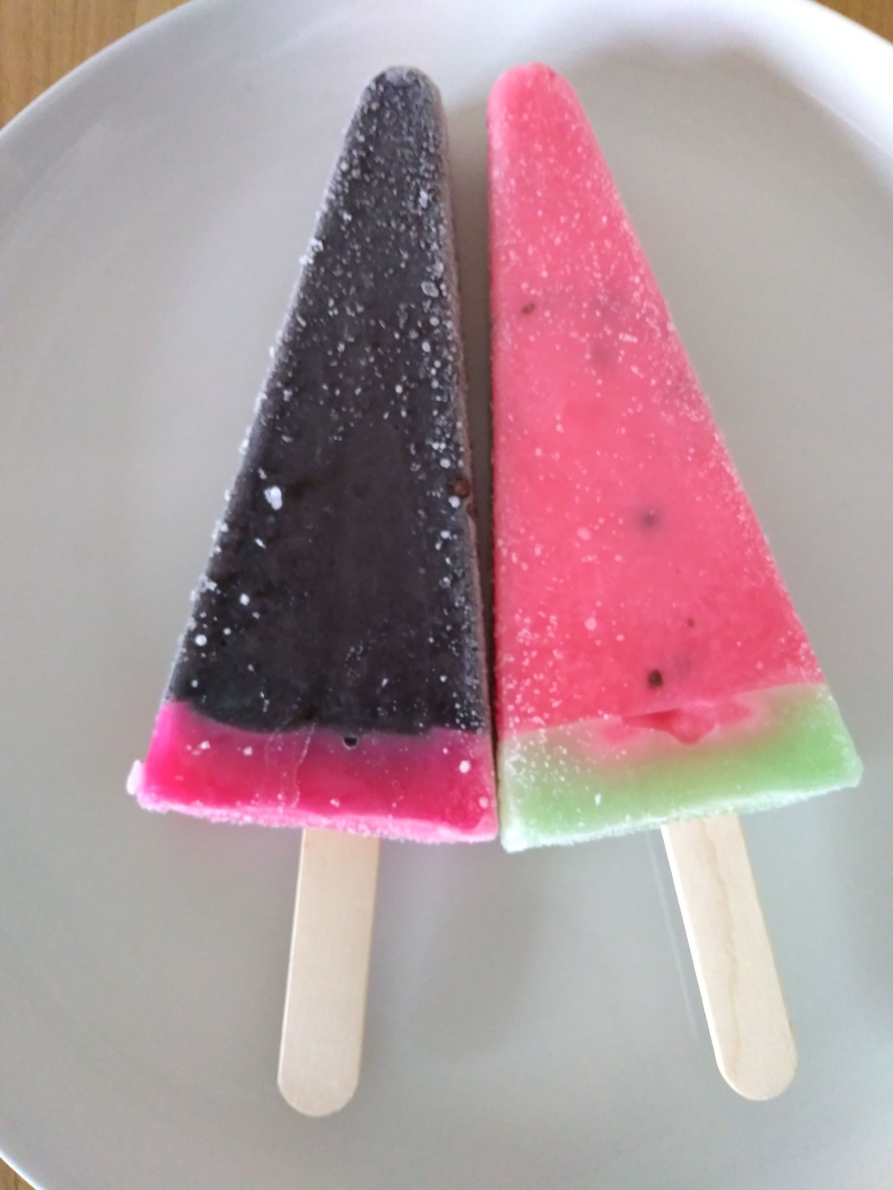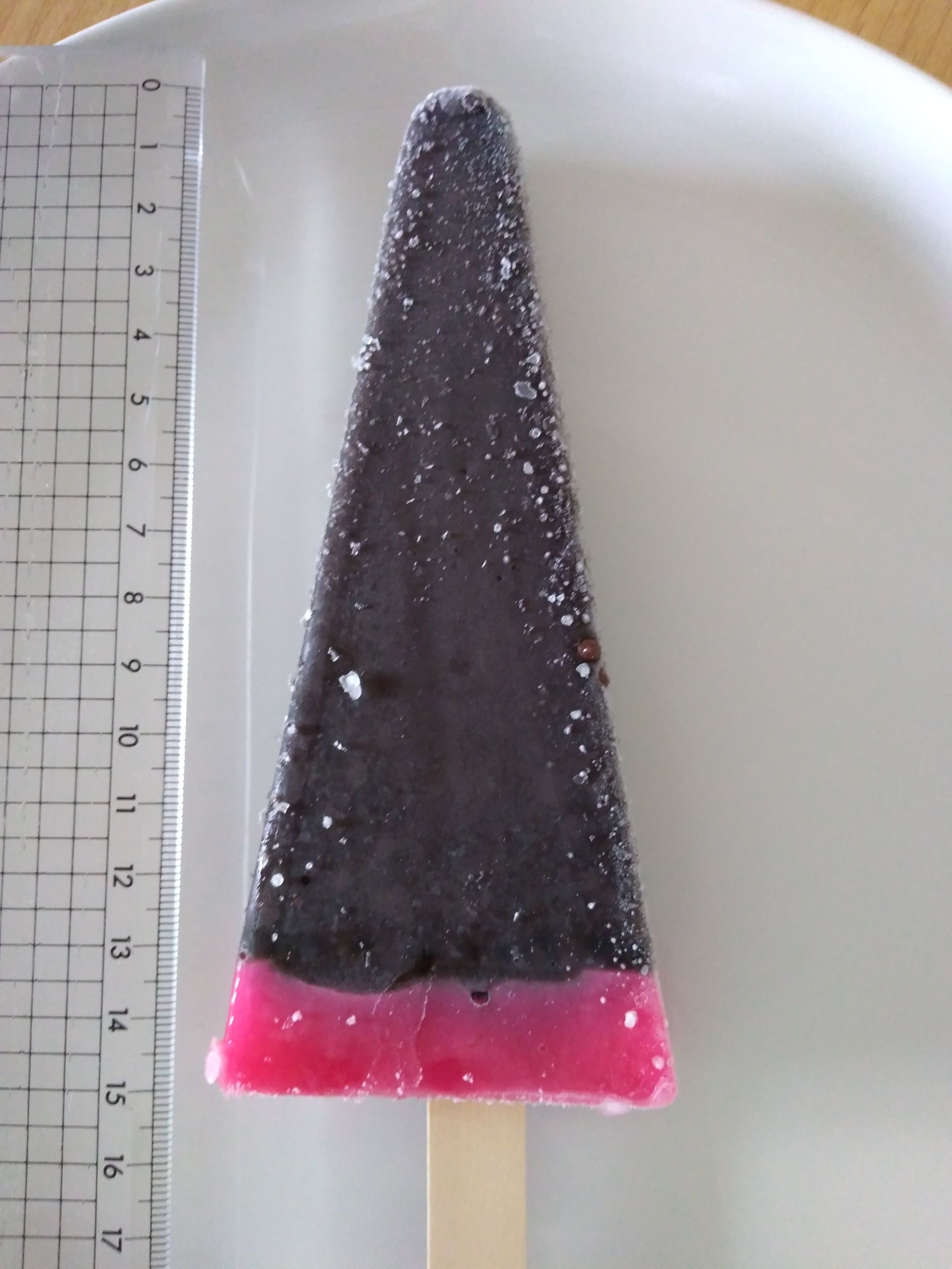 通常のスイカバー(右)と比べると、せっかくのスイカバーの「スイカ感」がゼロなのがよくわかります。なぜ黒くした?