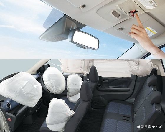 前方・前席横、そして後席のことも考えて、横方向に長く伸びるカーテン状のものまですべて標準装備!