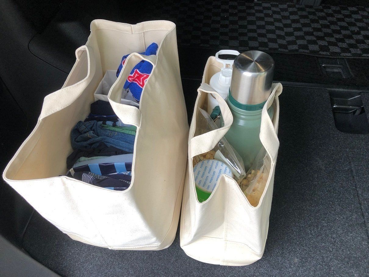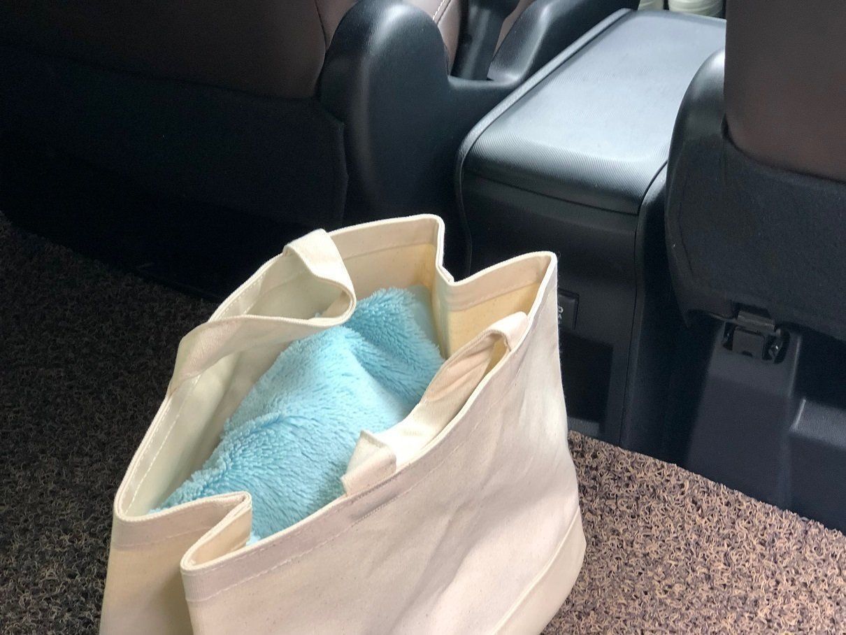 車での移動時、車中で使うアイテムを入れておくのもおすすめの使い方。たとえば、エアコンが冷えすぎたときのために、バスタオルやブランケットなどを入れて置けば、寒くなったらさっと取り出しできます。