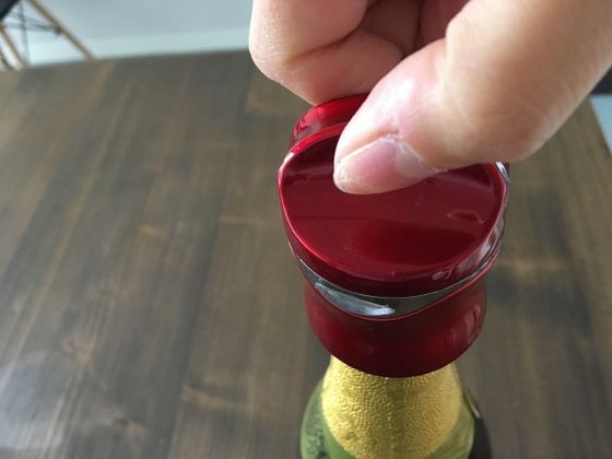 使い方はとってもカンタン。瓶の口部分に上から被せて、上部のつまみを右に数回まわせばしっかりと栓がされます。ペットボトルの蓋のような感覚で、瓶の飲料も保存できちゃうわけです。開けたいときは左にまわすだけ。