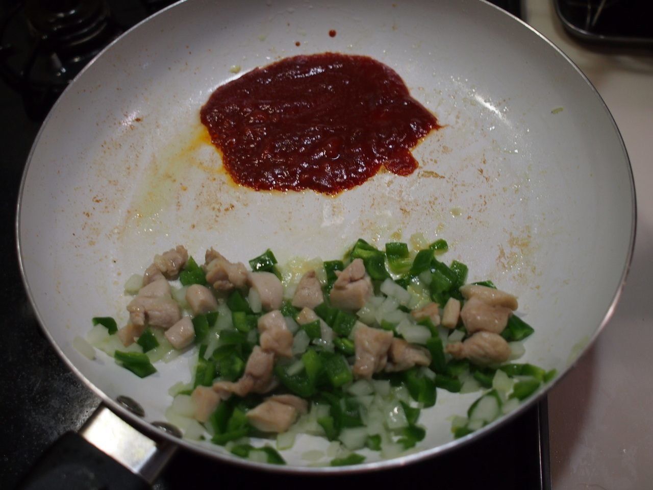 多くのプロに共通していたのが、ケチャップを入れるタイミング。それは「ご飯を入れる前」です。具体的には具材を炒めた後なのですが、すぐに混ぜずにまずは炒めた具材をフライパンの横にずらし、ケチャップだけに火を入れます。ブクブク泡立ってきたらオーケー。これは、ケチャップの水分や酸味を飛ばすためだそうです。これをやれば、パラパラのチキンライスになります。
