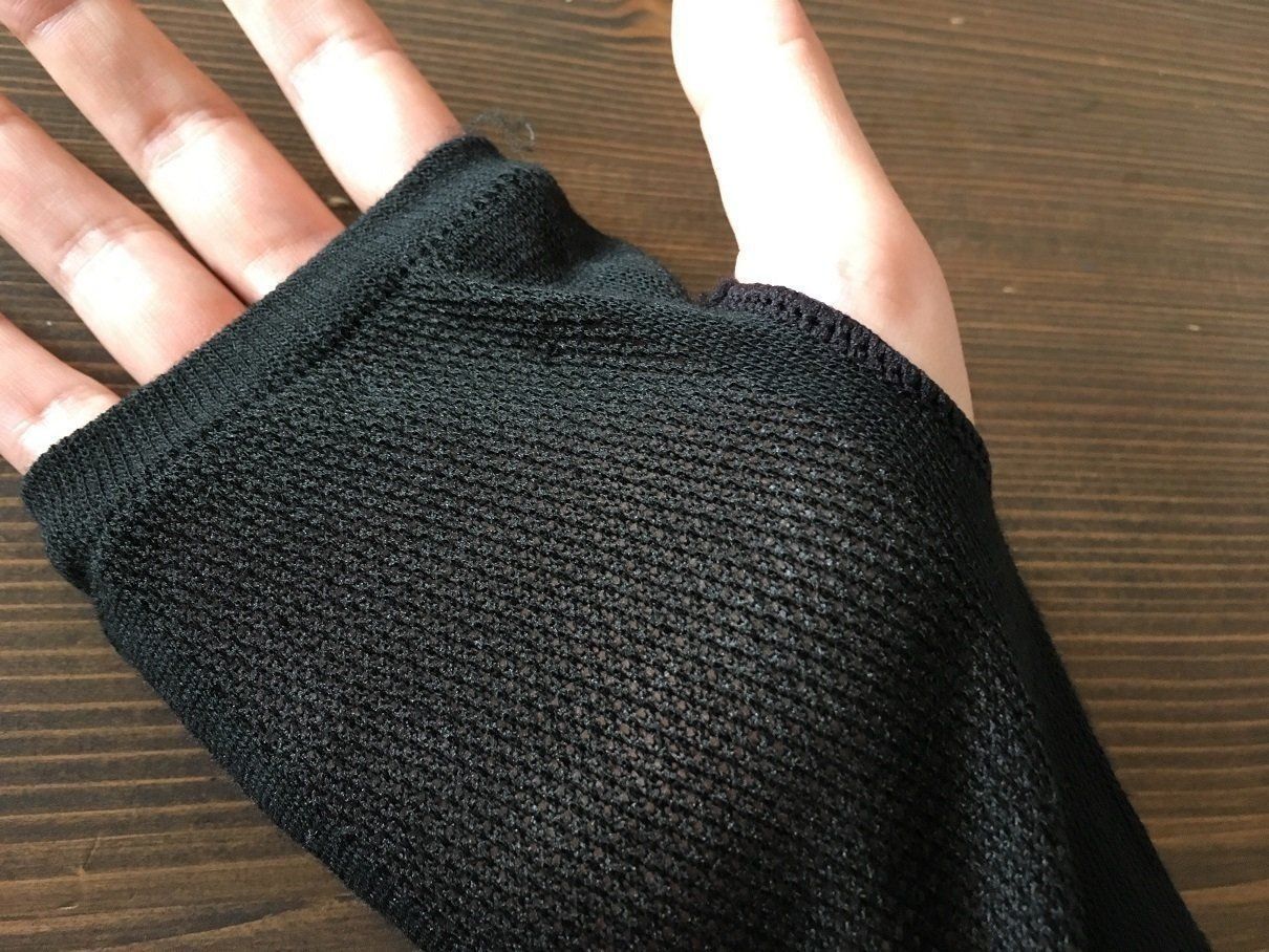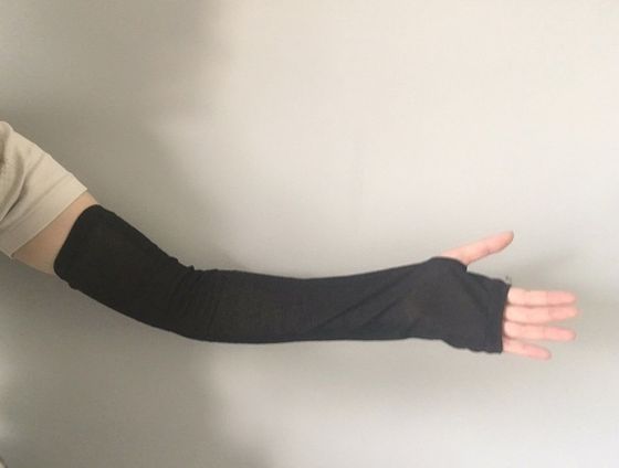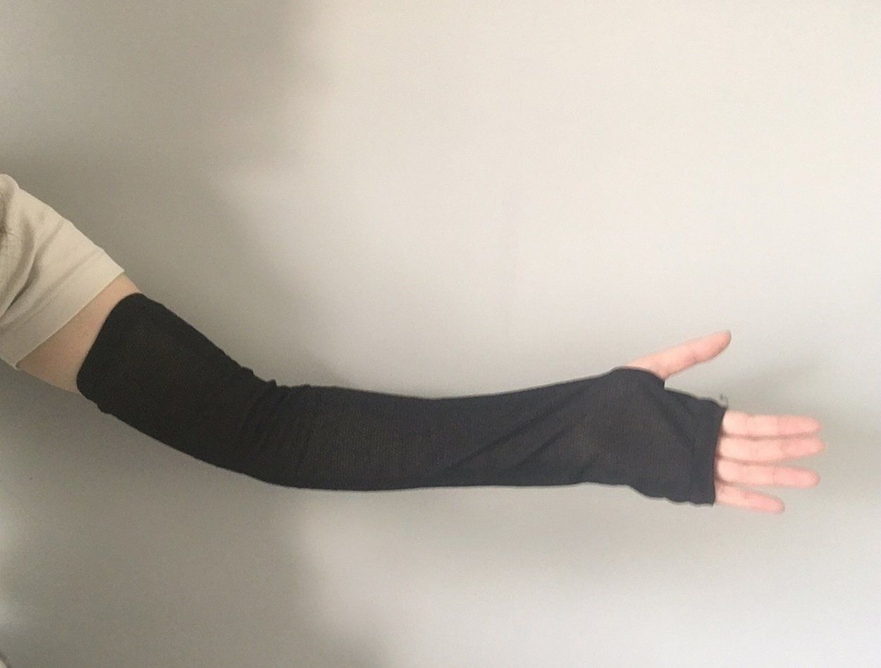 ここで選んだのは1番人気の48cm。腕を通すと二の腕まで隠れます。内側はメッシュになっているので風通しもいいし、さらっとして暑い日にピッタリですよ。