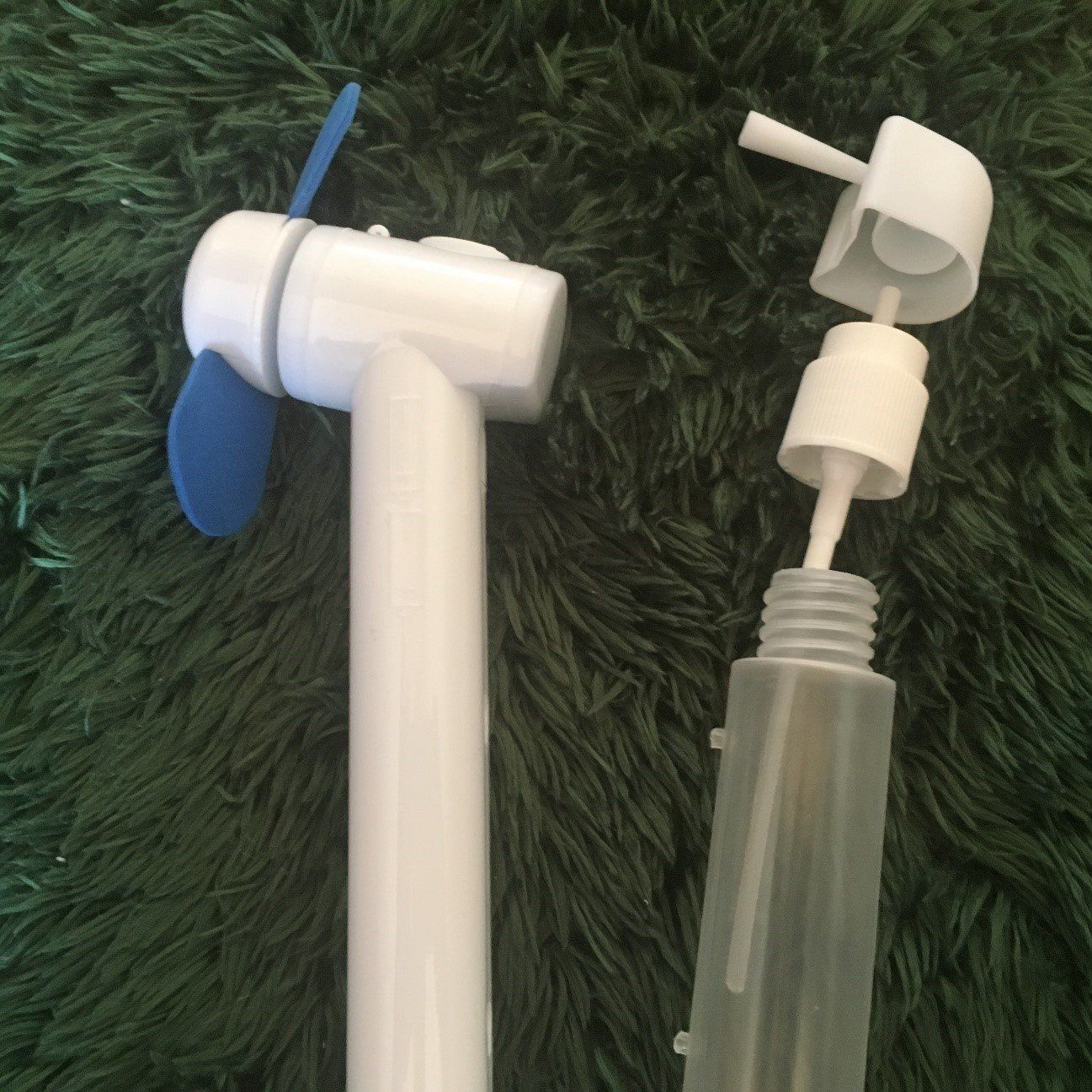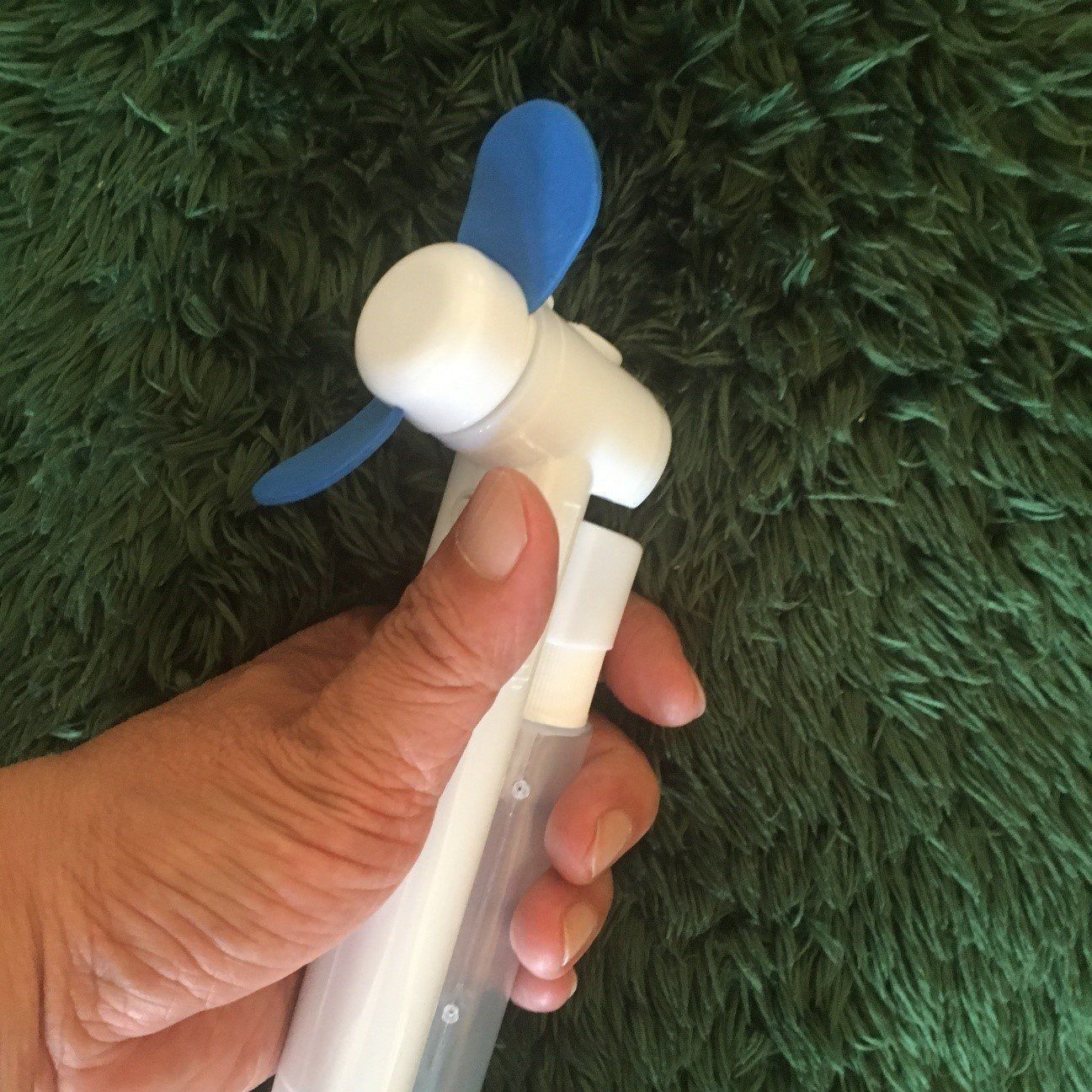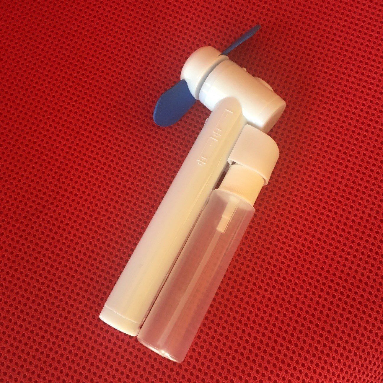 使うときは、取り外したケースに水を入れて、扇風機の電源スイッチを押すだけです。霧吹き状態の水と風が顔にあたると、すごく気持ちがいいです。汗だくになったときに使えば、天国気分が味わえるでしょう。