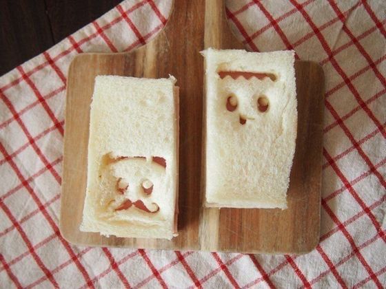 サンドイッチ用の食パンを型抜きすると、キュートなデコサンドイッチの完成!しっかり力を入れて「とうふスタンプ」をスタンプすると型が抜けます。お弁当にもおすすめです。