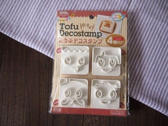 ダイソーの「とうふデコスタンプ」 4個入り100円。豆腐にポンとスタンプして、醤油をかけるとデコの完成!というアイテムです。豆腐までデコしてかわいくしちゃいます!