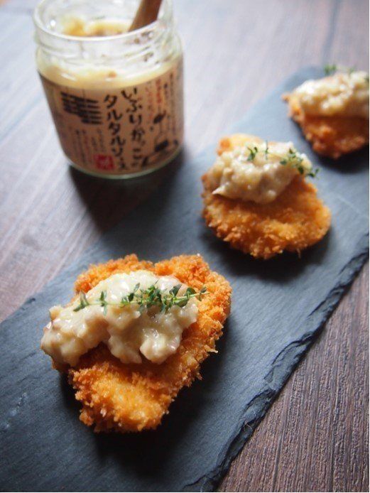 いぶりがっこのタルタルソース(429円)は、フライや温野菜のディップ、冷ややっこにのせても◎。いぶりがっこの味にマヨネーズのまろやかさとピクルスの酸味が合わさり、さっぱりとおいしい。これがあれば簡単におもてなし仕様になるので、あると便利な調味料です。