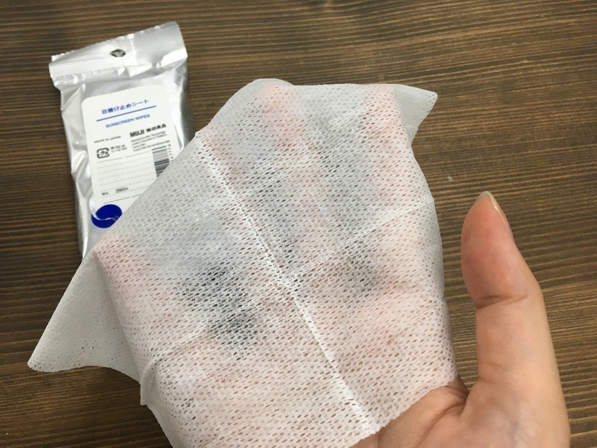 日焼け止めは何種類か出ていますが、私のおすすめは「日焼け止めシート」(290円(税込))。化粧品ではなく、旅行グッズのコーナーに置いてあることが多いようです。