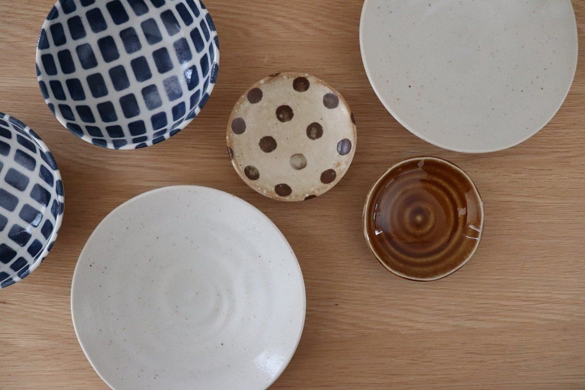 サイズや形が色々あるのも食卓で合わせやすいポイント。豆皿だけでも6種類の柄の中から選べます。あえて全部違う柄でそろえてみると、盛りつけが楽しくなるかも。