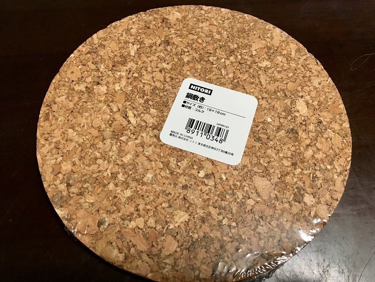 ニトリには、鍋敷きにもオリジナル商品があります。商品名は「コルク鍋敷き」で価格は205円(税込)です。今回紹介した28cmのフライパンにぴったりのサイズなので、あわせて購入するのもおすすめです。
