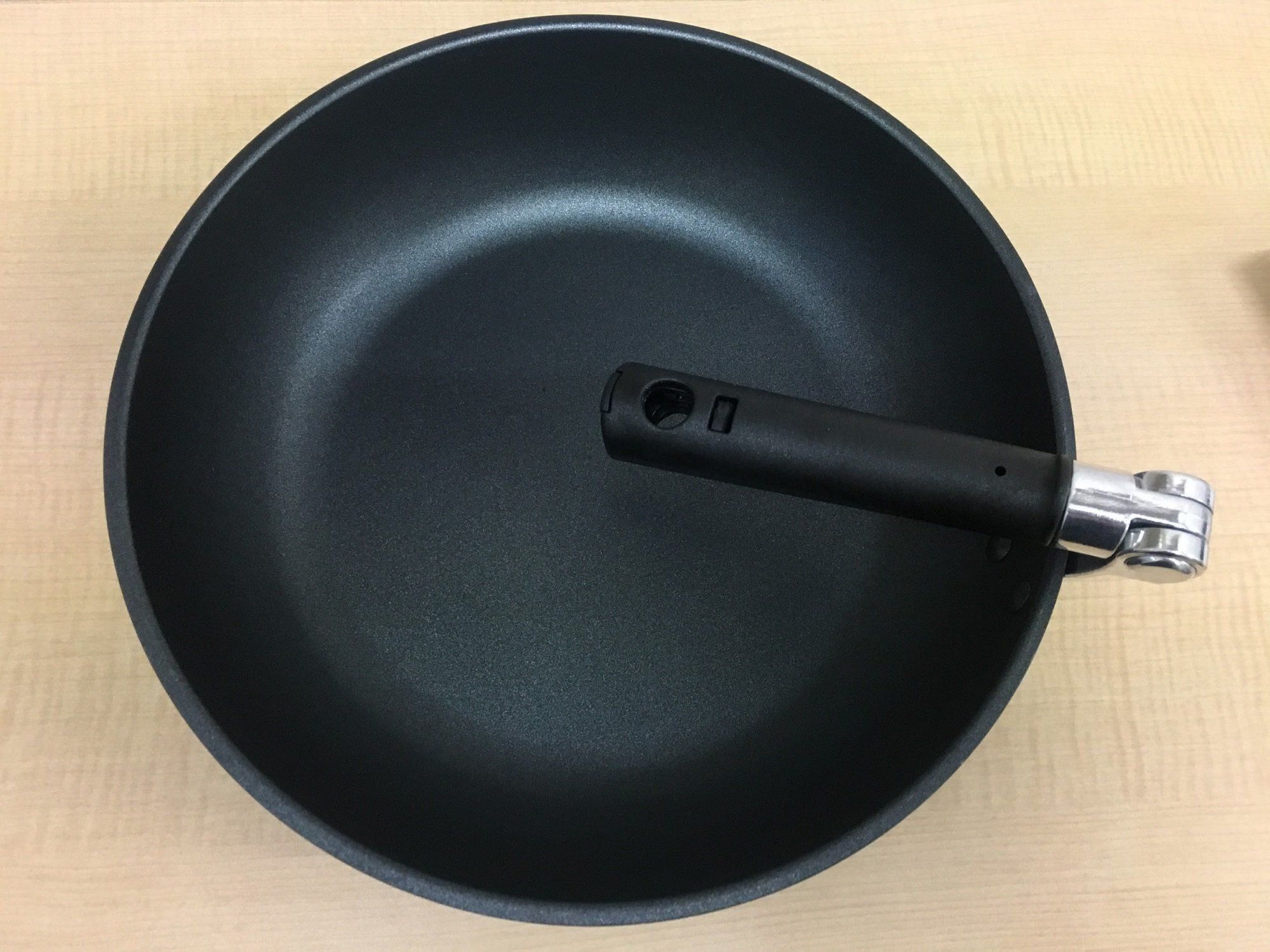 ニトリの「取手がたためるフライパン」は、複数のサイズが用意されています。今回は、いちばん使う機会が多そうな28cmと玉子焼き用を購入。価格は、28cmが1,674円(税込)、玉子焼き用が1,193円(税込)となっています。