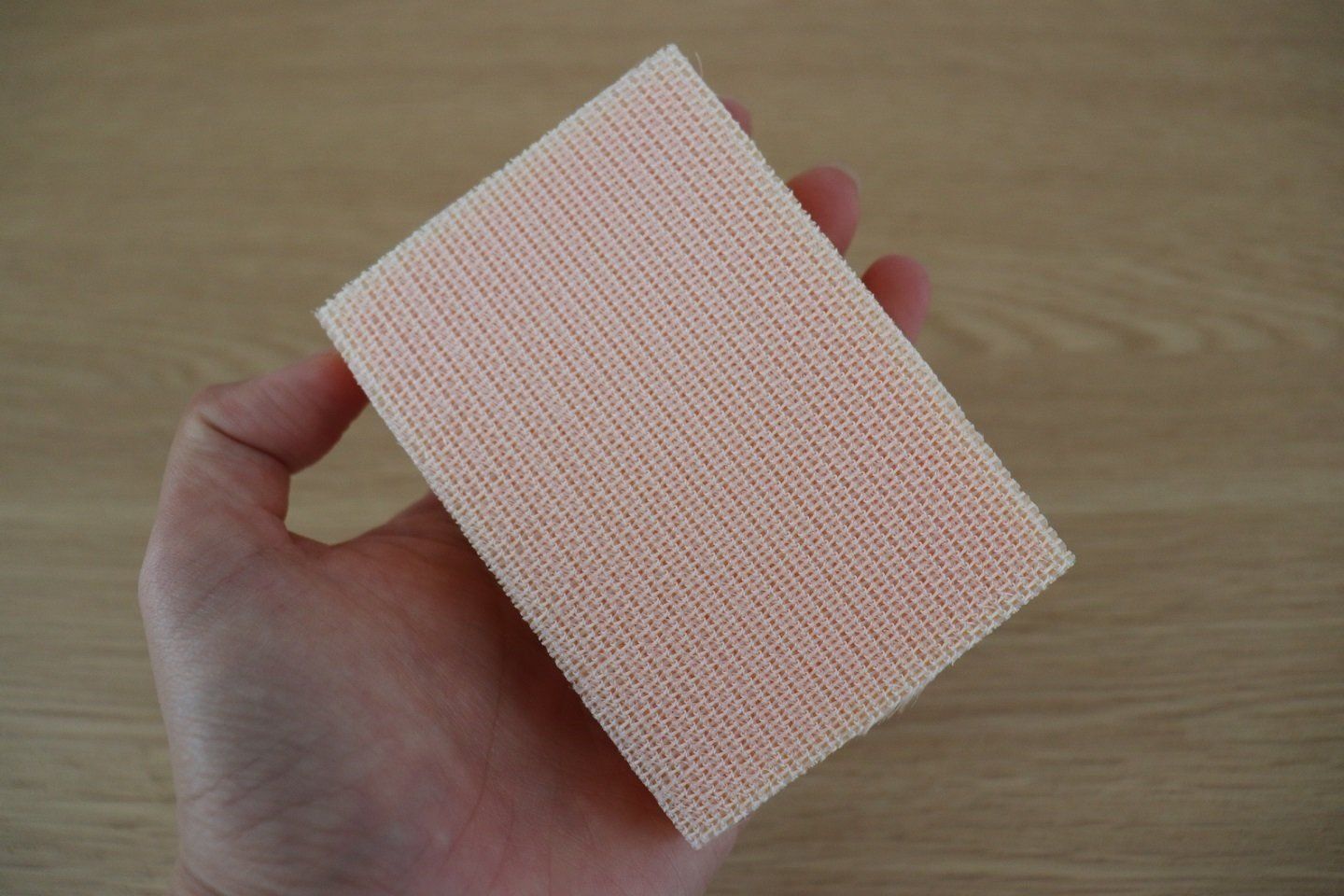 その問題を解決してくれたのがこのマイクロブラシの部分。触った感じはザラザラしています。使い方は水につけて絞るだけ!洗剤いらずなのもうれしいです。