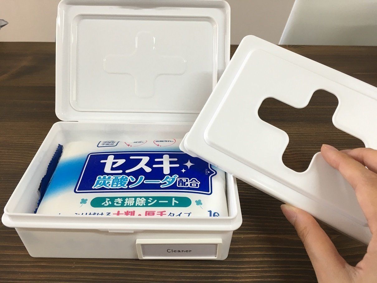 同じくセリアのウェットシートボックスLを使って、すぐに取れるようにキッチンの引き出しやレンジまわりに置いておくといいですね。