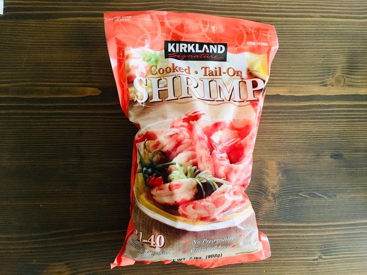 コストコの冷凍エビには調理済と非加熱のものがありますが、個人的におすすめなのは調理済のもの。この「KIRKLAND カークランド クックド シュリンプ (尾付)」は調理済みでしっぽがついたタイプなので、尻尾をつけたままの方が食べやすい料理に向いています。1袋に31個~40個入って、価格は3,680円(税込)。