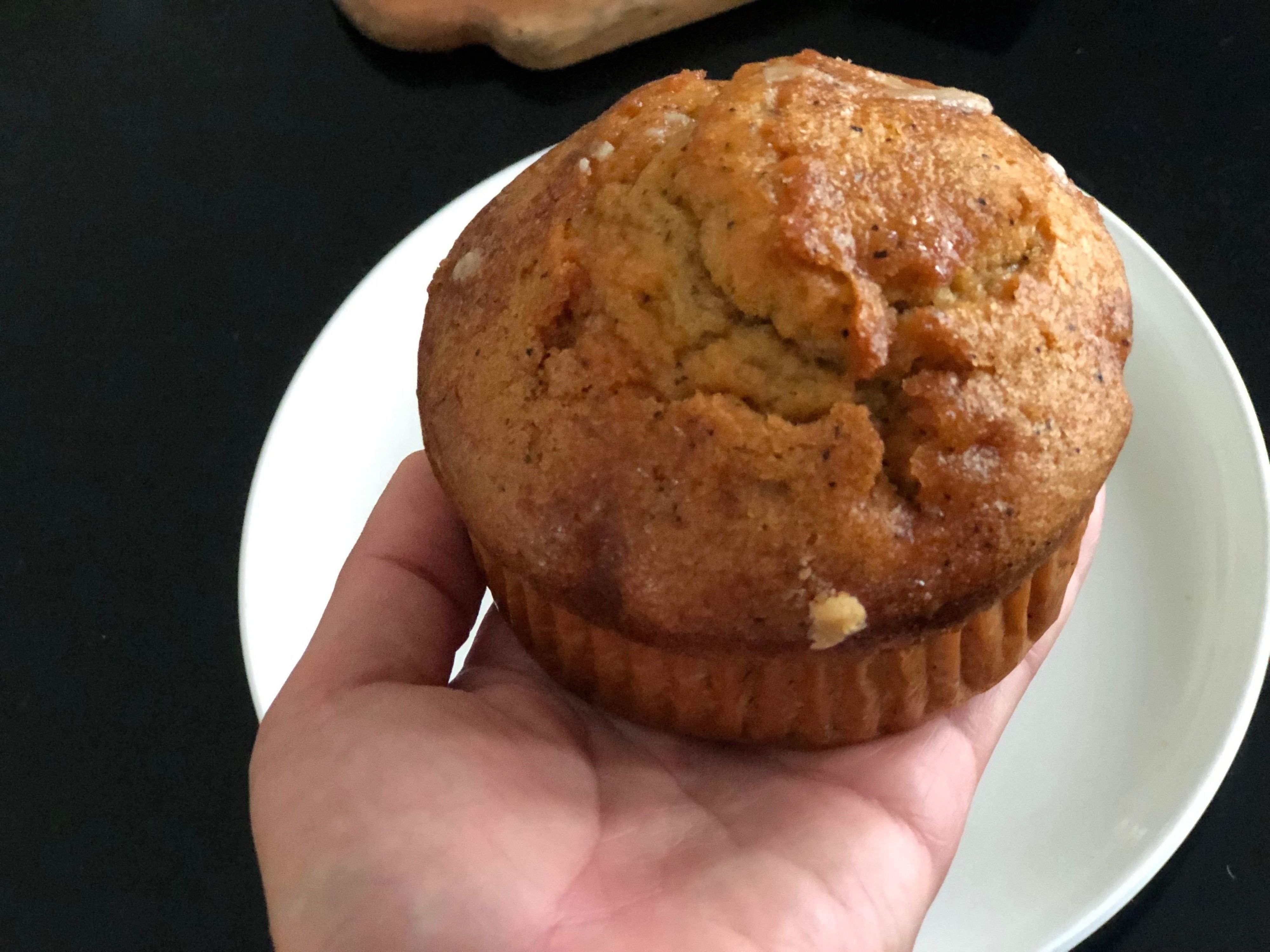 バナナクランブルマフィンは、ほんのりとバナナフレーバーがきいていて、わが家でも人気のマフィン。思ったよりも甘すぎず食べやすいので、食べすぎには注意です!