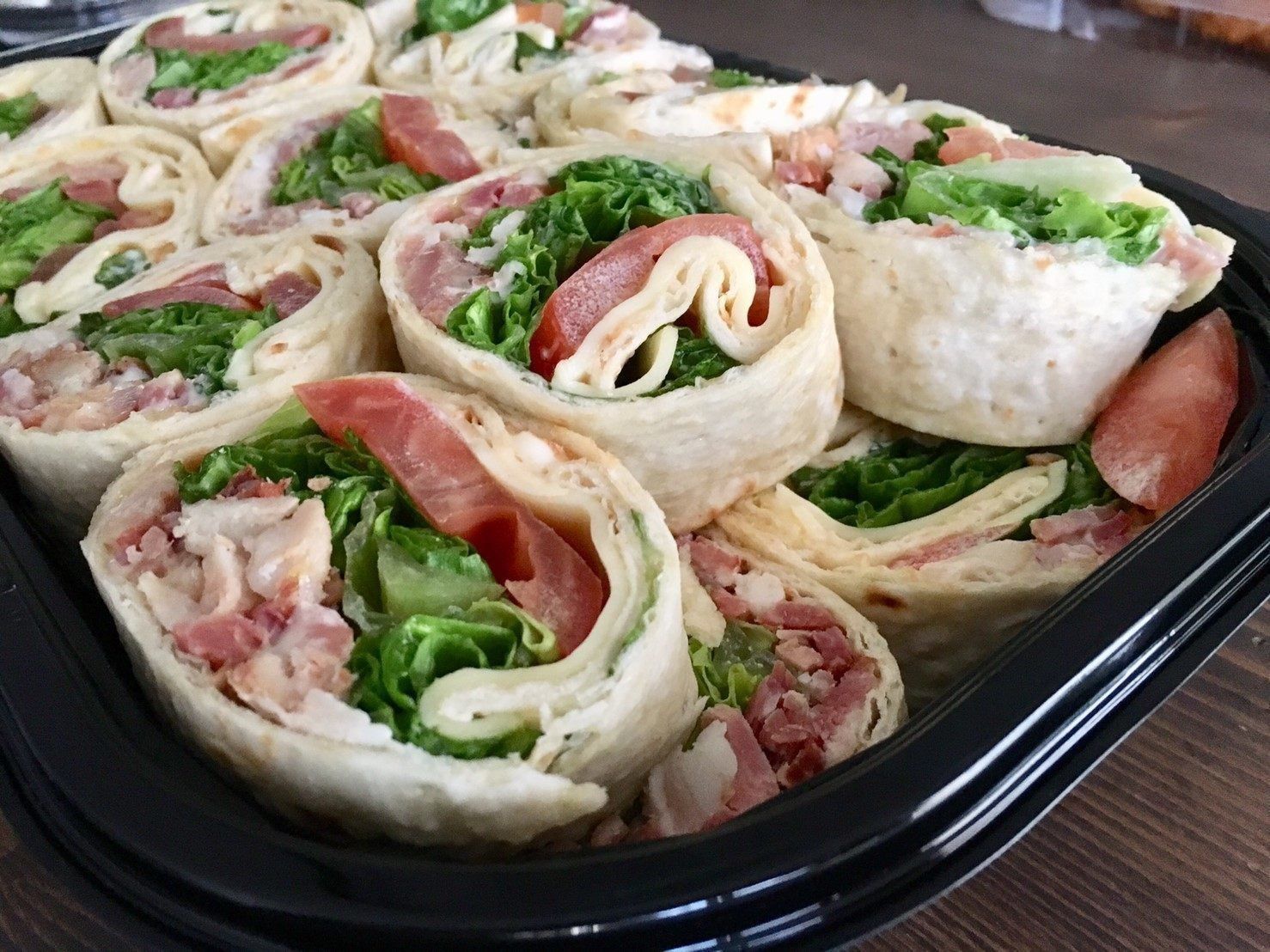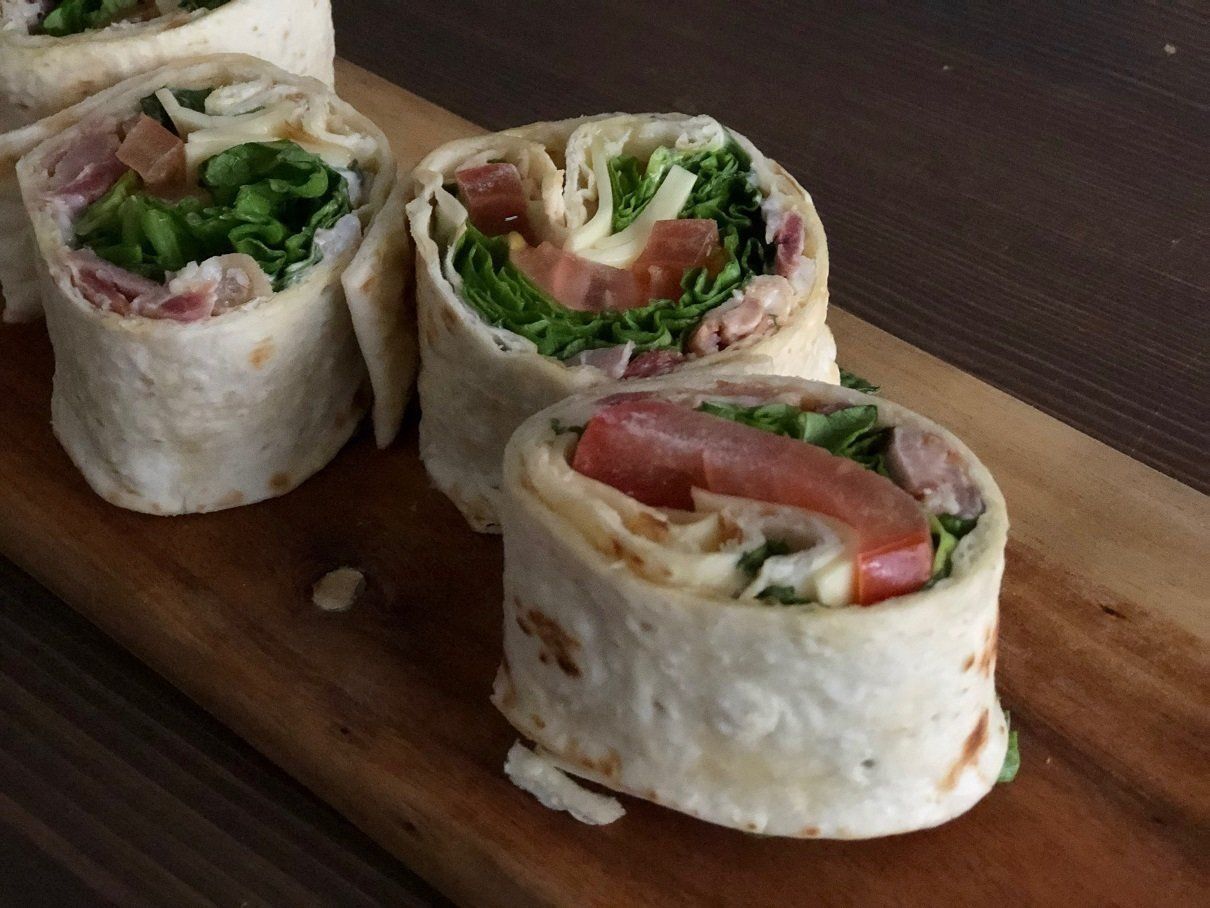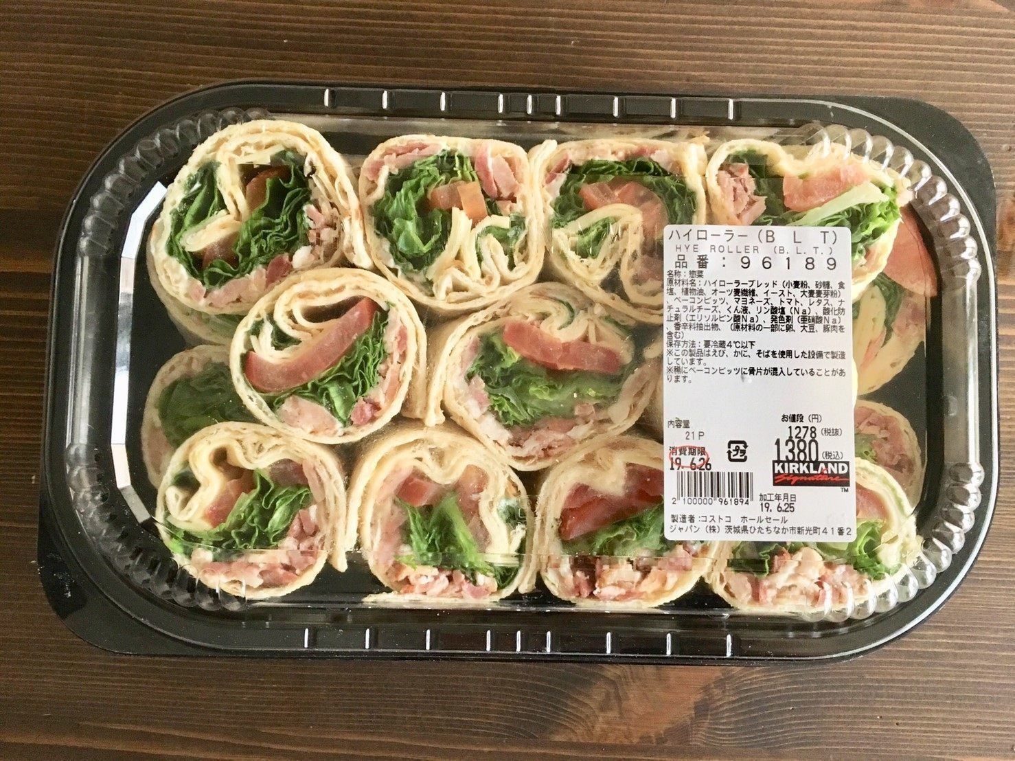 コストコのデリカで販売しているハイローラー(B.L.T)。B.L.Tというのはベーコン、レタス、トマトのことですね。具材をギュッと巻いたトルティーヤを太巻状態で輪切りにしたものが21個入って、価格は1380円(税込)。1個あたり約65円ですね。固めの容器に入っているので運搬時に形がくずれにくいのもポイントです。