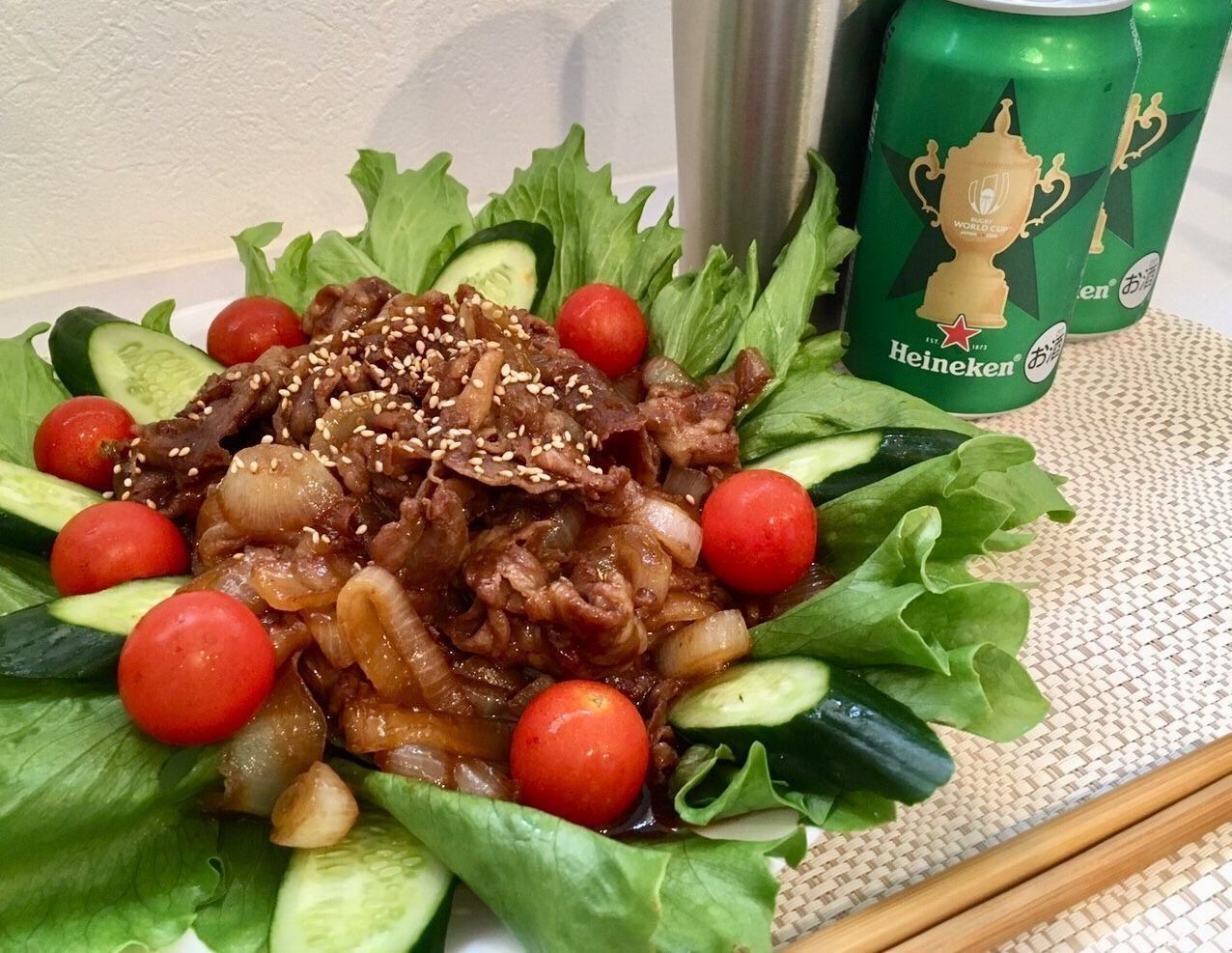 コストコ定番商品のひとつ、プルコギビーフ。辛いわけではないですが甘めの醤油ベースの味つけで、玉ねぎ、小口ネギも入っているので、そのまま焼くだけで立派な一品に。とにかくお手軽!