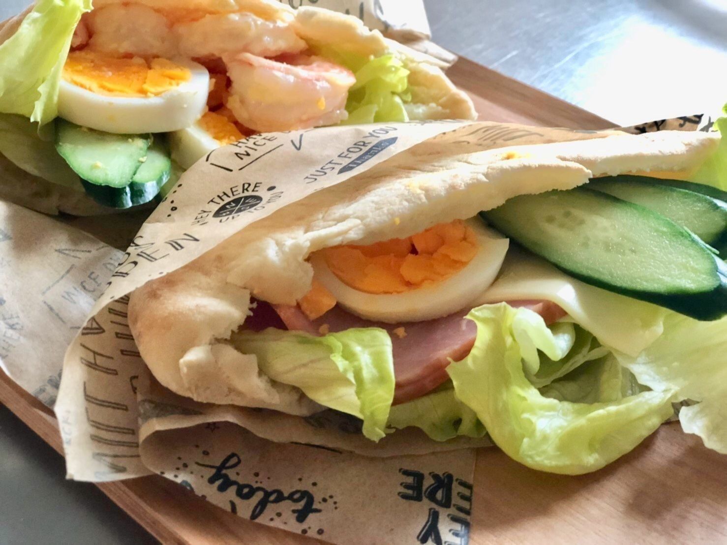 調理も簡単。電子レンジで10秒チンするか、常温に30分程度出しておけば自然解凍できます。さらにトースターで約1分温め、パンを半分にカットして好きな具を詰めたらピタサンドの完成です!