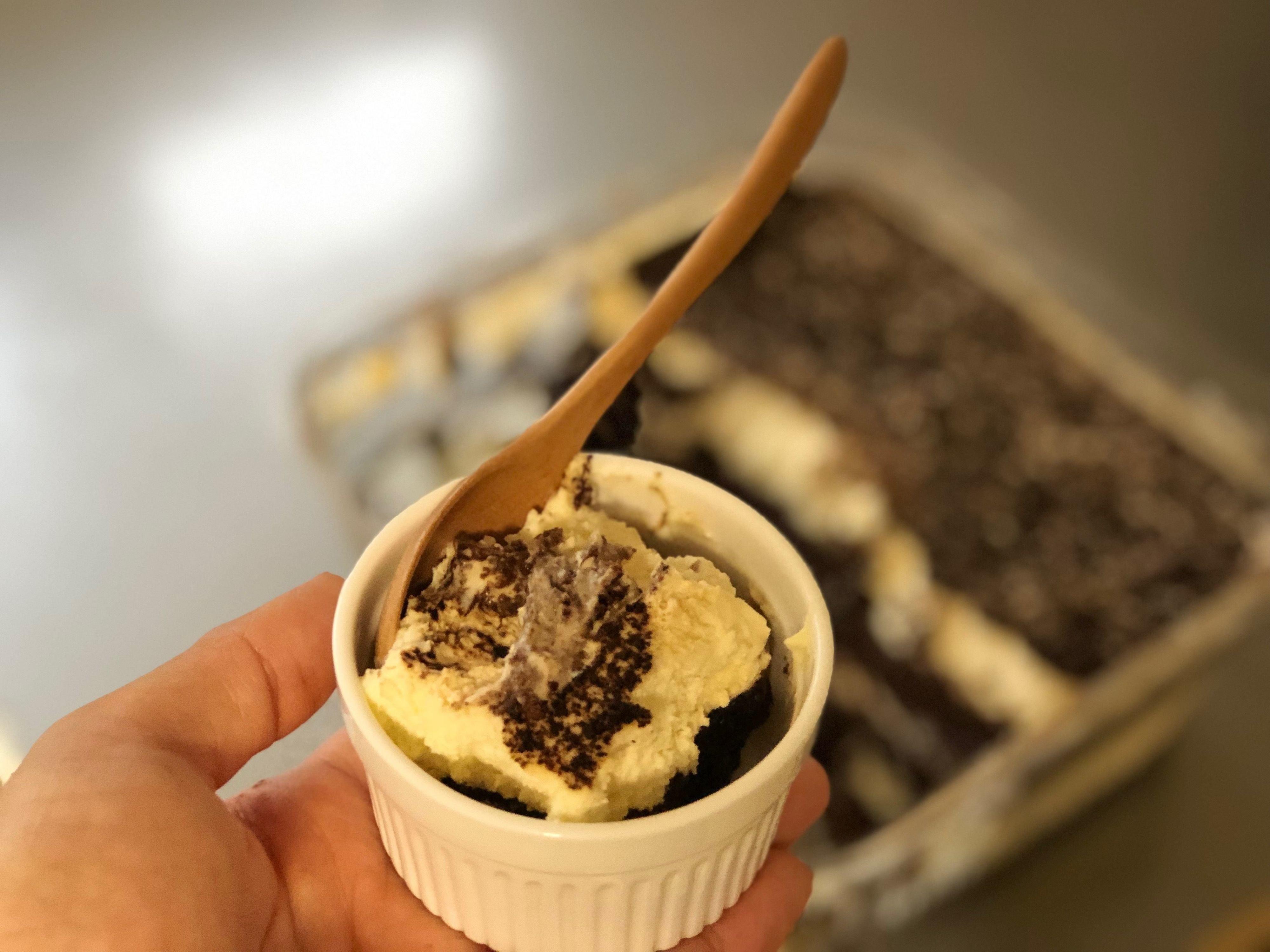 コーヒーの風味、スポンジのしっとり感、クリームチーズの甘みのバランスが◎。半解凍で食べるのも、クリームがアイスみたいでおいしいですよ。小さな器に食べる分だけすくってもいいですが、何回もおかわりしちゃいそうです。大容量で満足感ありのティラミス・ドルチェはリピート買い必至です!