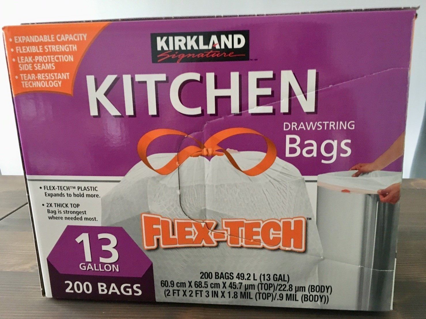 コストコのオリジナルブランド、カークランドのひもつきポリ袋は、大容量の200枚枚入り!運ぶのも大変なほど、ずっしりと重いです。価格は2,368円(税込)。