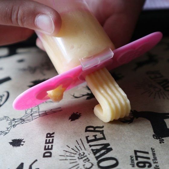 ハート形で押し出す場合は、押し出したあとラップに包み冷蔵庫で冷やすとカットしやすくなります。カットは糸を使ときれいに仕上がりますよ。