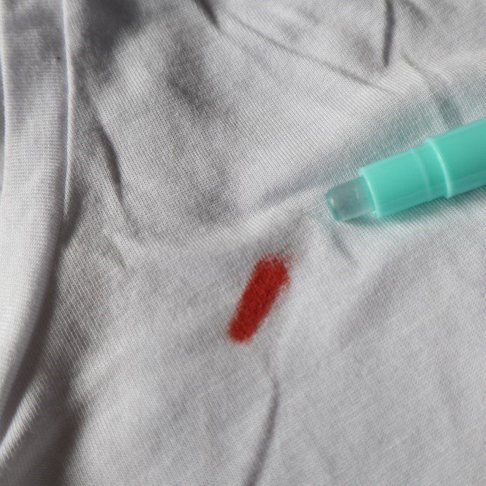 出先などで洋服を汚してしまったら、汚れたヵ所を水で濡らして、吸水性のいい布を衣服の下にあてて、シミ取りマーカーで汚れを擦ります。汚れが落ちるまで繰り返し行います。