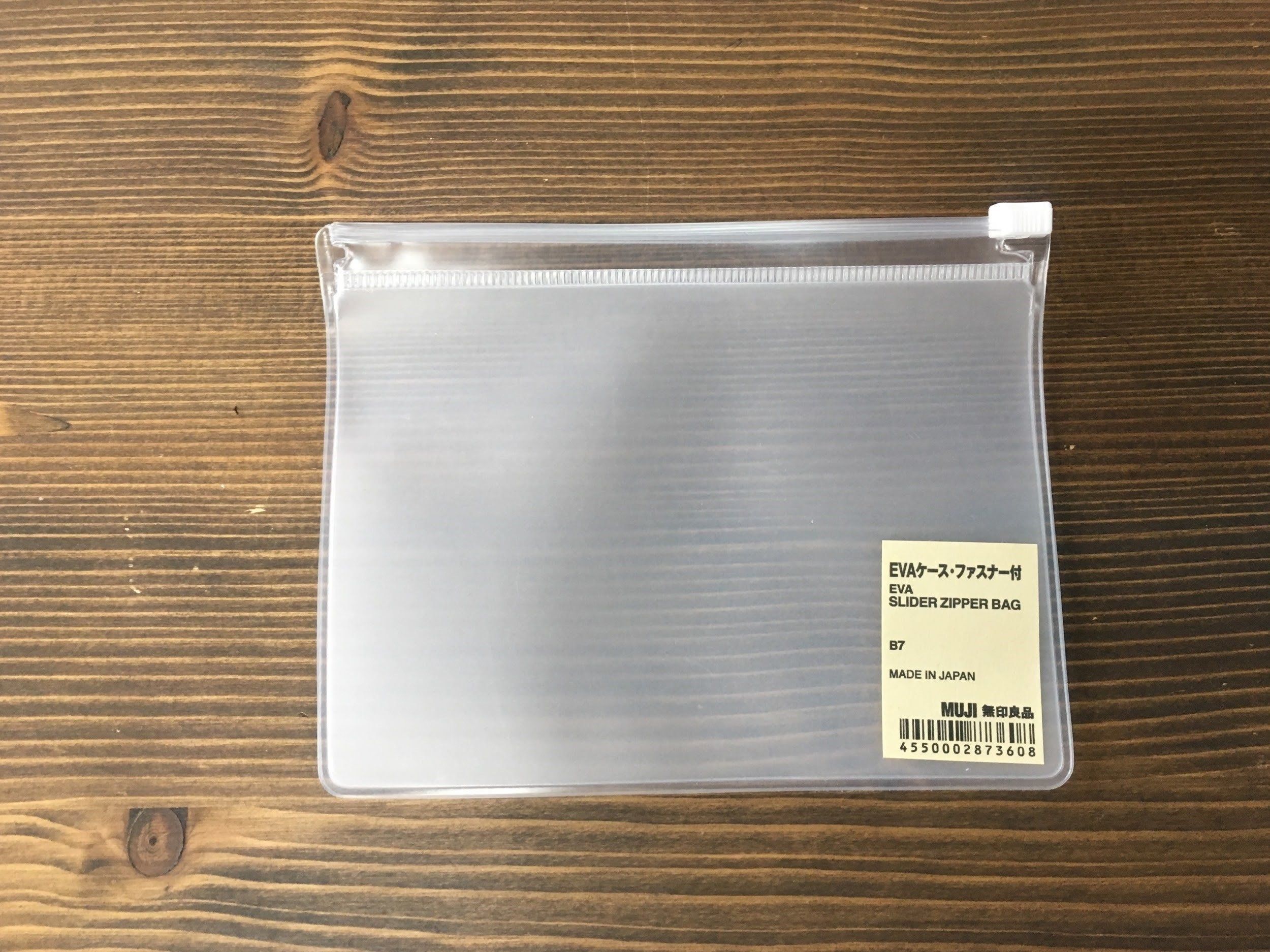 今回ご紹介した分量だと、「EVAケース・ファスナー付 B7サイズ」(税込80円)がぴったり。半透明で中身がわかりやすいのでおすすめです。
