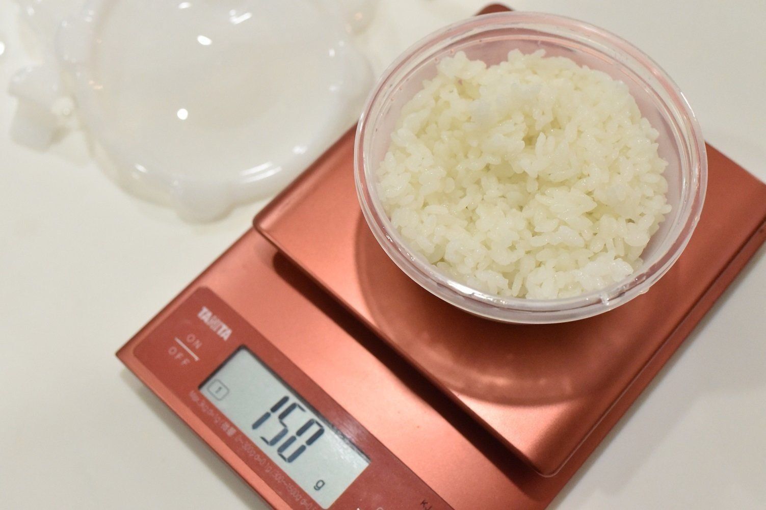 ご飯1膳分(約150g)を計量して入れてみました。ふたをしてもご飯粒がつぶれることはなく、ふんわりとしたまま保存できそうです。
