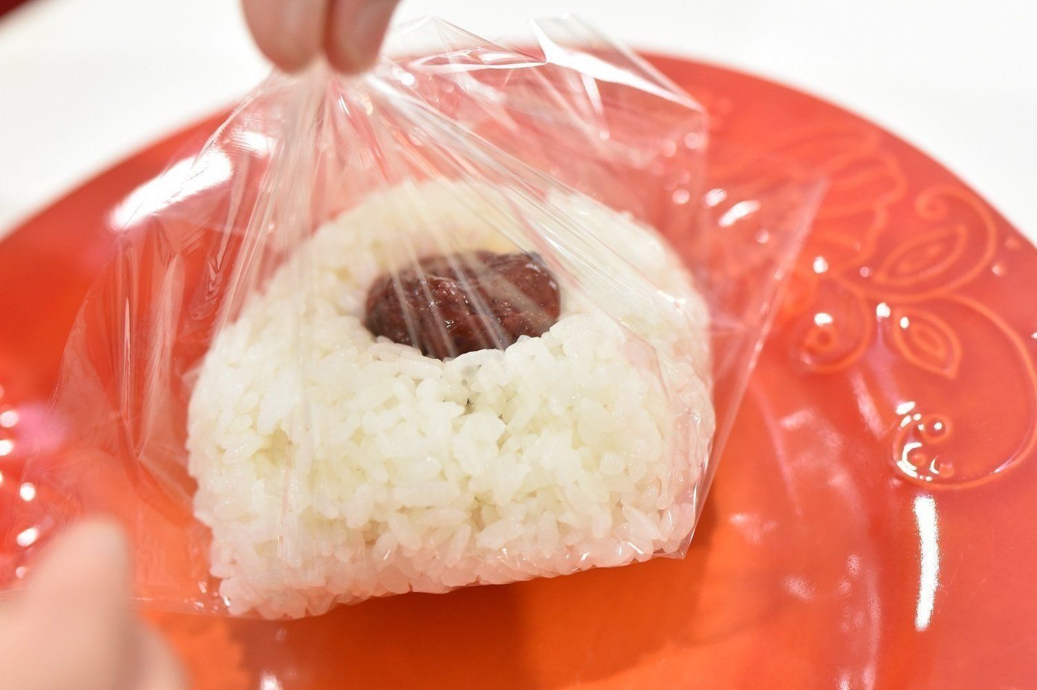 レンジで解凍したごはんをラップの上に取り出し、凹みの部分に具を入れておにぎりを握るのもオススメです。