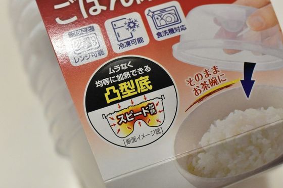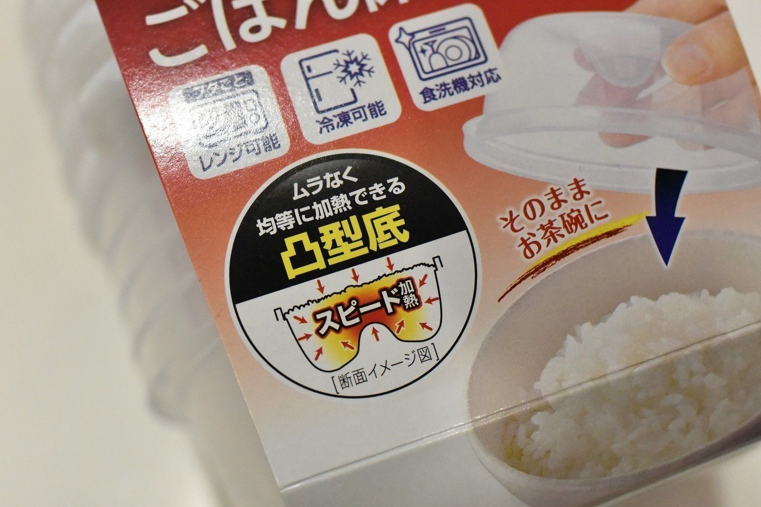 ニトリのごはん保存容器は、凸型の底になっていて、ムラなく均等に加熱することができます。さらに、保存容器自体が円形なので、そのまま逆さにしてお茶碗に移すことができます。