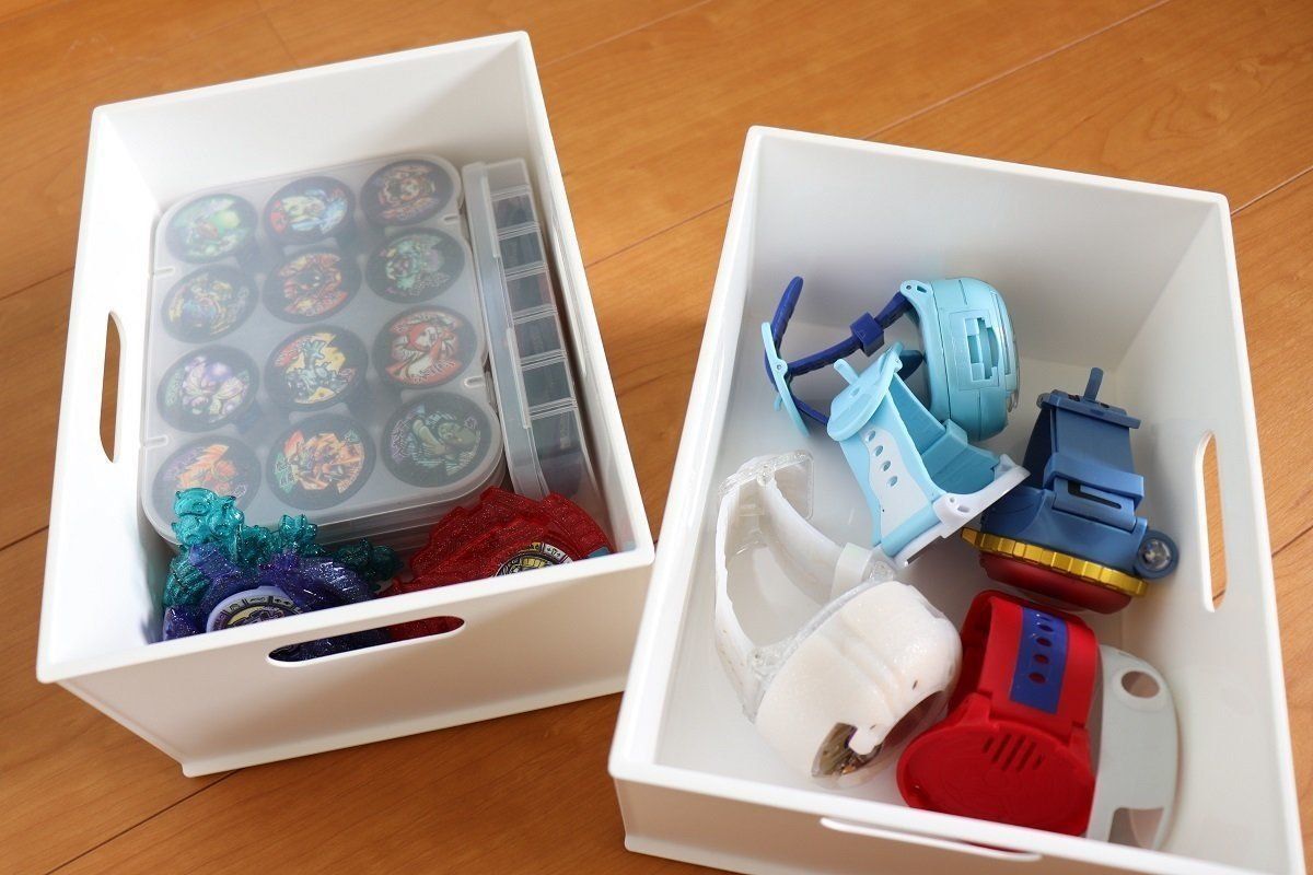 子どものおもちゃなど細々したものでも、自分で片づけてくれたらうれしいですよね。「Nインボックス」の4つのサイズをうまく使えば、大きいものだけでなく細々したものの定位置もできてお片づけもしやすくなりますよ!