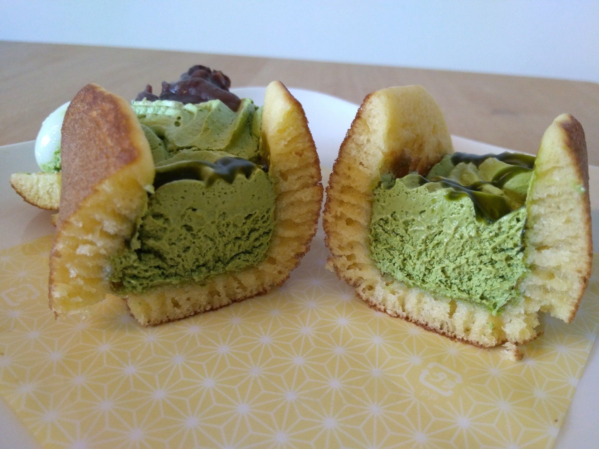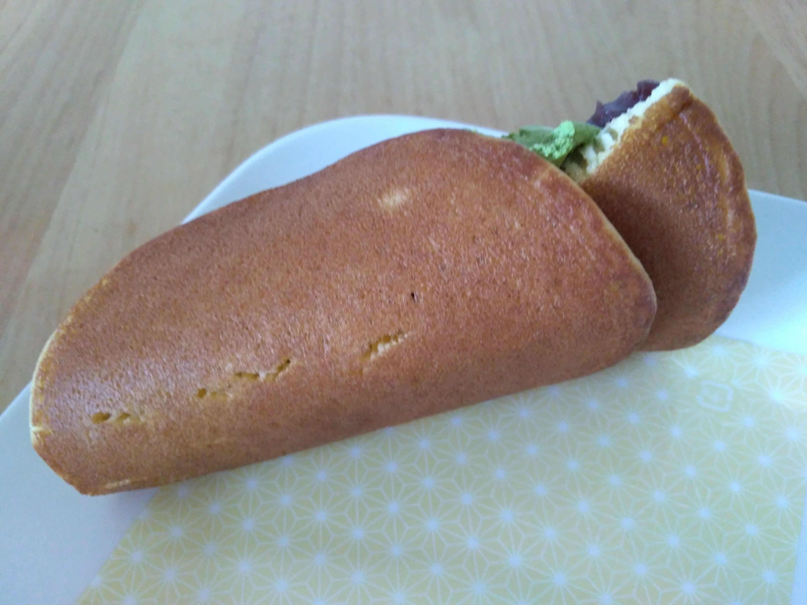 大きなどら焼き生地に、たっぷりの宇治抹茶ホイップクリームが包まれていました!