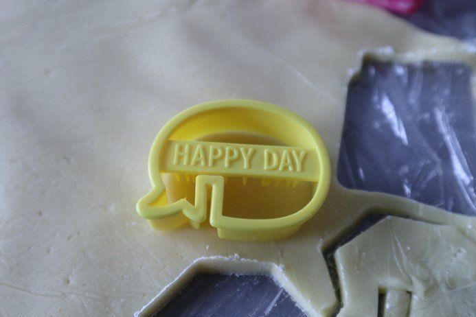 ひっかけ型は、HAPPY DAY、DELICIOUS、THANK YOUの3種類あり、メッセージクッキーがつくれます。コツは、真ん中の文字の部分を均等な力で押すこと。そうするとしっかりメッセージがスタンプできますよ。