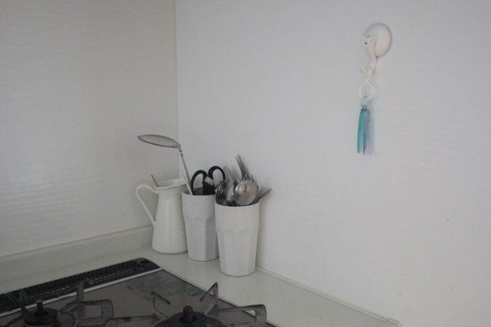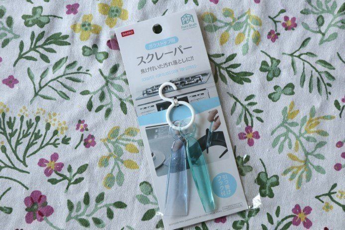 ダイソーのお掃除グッズ、スクレーパー100円。ミニマムな見た目ですが五徳の焦げついた汚れ落としなどに使えます。ブルー系のクリア素材がさわやかで、おしゃれな雰囲気がお掃除のやる気も上げてくれます。