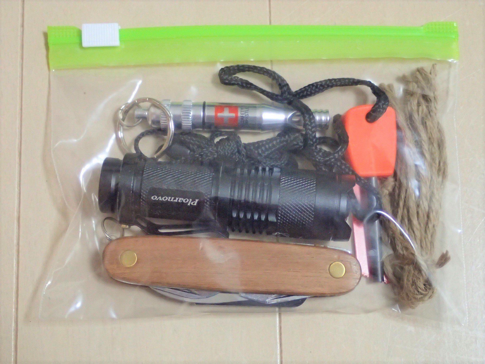 加えて筆者は、被災時対策として、ふだんから持ち歩いているものがあります。ライトと笛、十徳ナイフを袋に入れたものです。ふだんはバッグやバックパックの中に、旅行のときは手荷物に入れたりスーツケースに入れたりします。飛行機に乗るときは、十徳ナイフを手荷物にすることができないので、スーツケースに入れるようにしましょう。