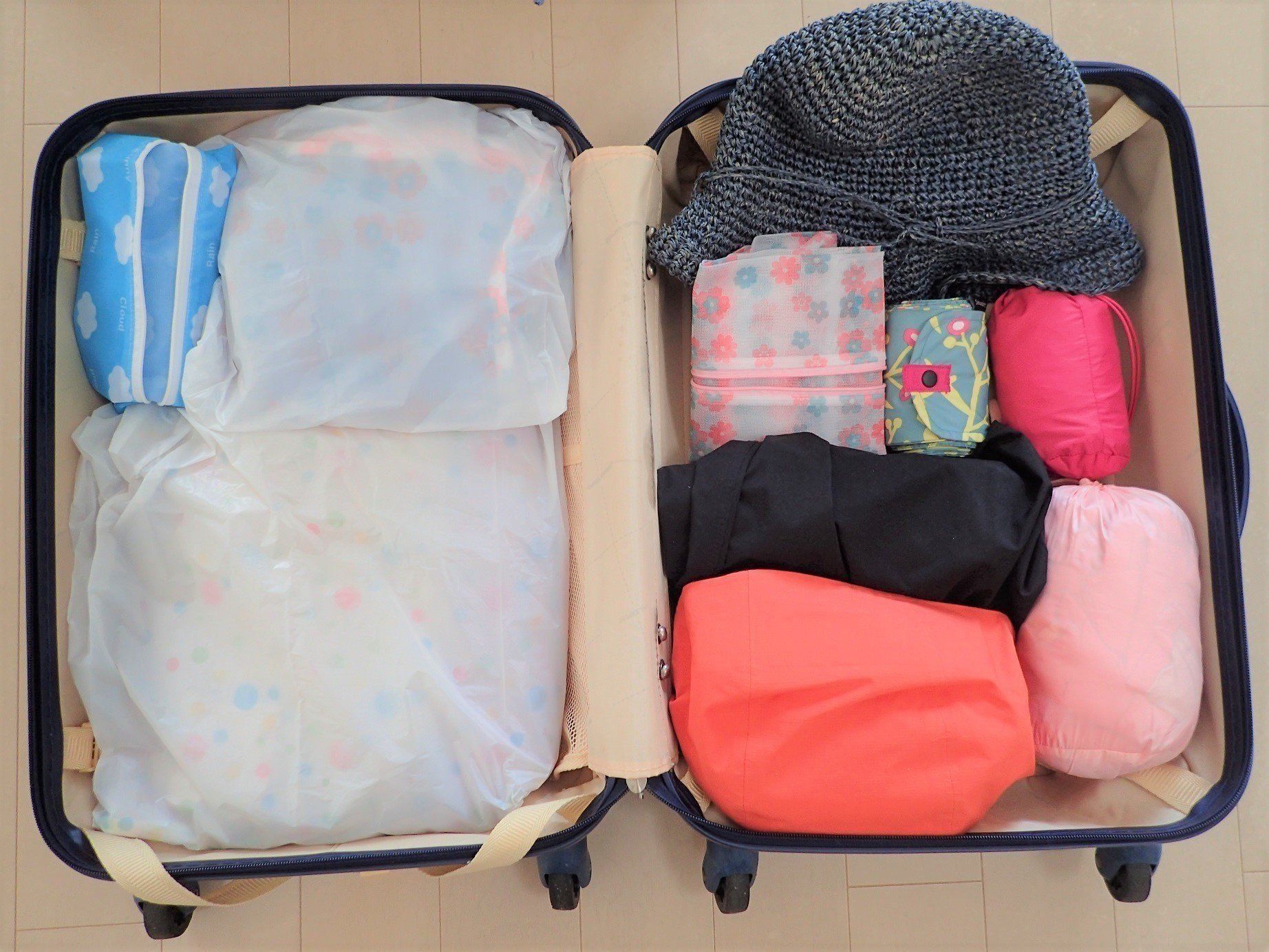 荷物を分けるランドリーバッグやビニール袋は、少し多めに用意しておきましょう。また、折りたたみのバッグを持ち歩くのもおすすめ。買い物のときのエコバッグとして使ったり、荷物が増えたときのサブバッグとして使ったり、いざというときに便利です。