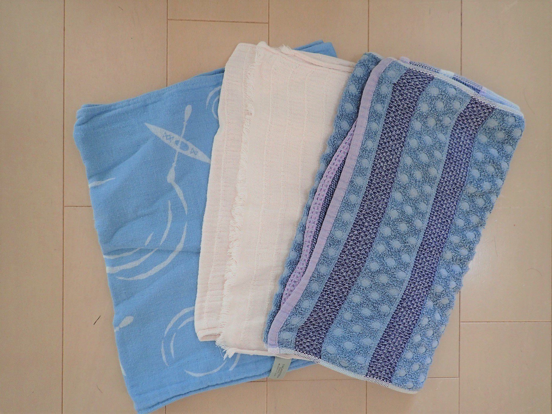 旅行のときは、あまりかさばらないものを多めに用意するようにしましょう。衣類であれば季節を問わず着られるワンピースや、軽くて小さく収納できる防寒ウェアなど。タオルも、手ぬぐいサイズのスポーツタオルなら、3枚入れてもバスタオル1枚よりコンパクトです。一つひとつについては小さく収納できるものを選び、持っていくものは多め。必要だと思うものは迷わず持っていくようにしています。