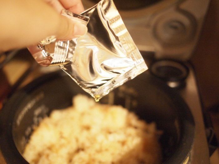 ご飯を炊くスイッチを入れる前に軽くかき混ぜておきます。全体的に満遍なくいきわたるように、少し丁寧にかき混ぜるのがポイントです。