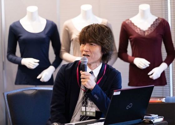 イオンリテールからは、機能性インナー「ピースフィット」のプレゼンテーションです。ピースフィットのあったかインナーは、保温レベルが異なる3種類を展開。うすくてなめらかな素材で、暑すぎない暖かさを実現した「スムースファクト」に、空気を含んだ糸を使ってふんわり感にこだわった「極ふわっと」。さらに、裏起毛でストレッチ性が高く体にフィットする「スムースファクト厚地」と、気温やその日の予定、好みによって選べるラインナップがそろっています。しかも、カラーバリエーションが豊富!