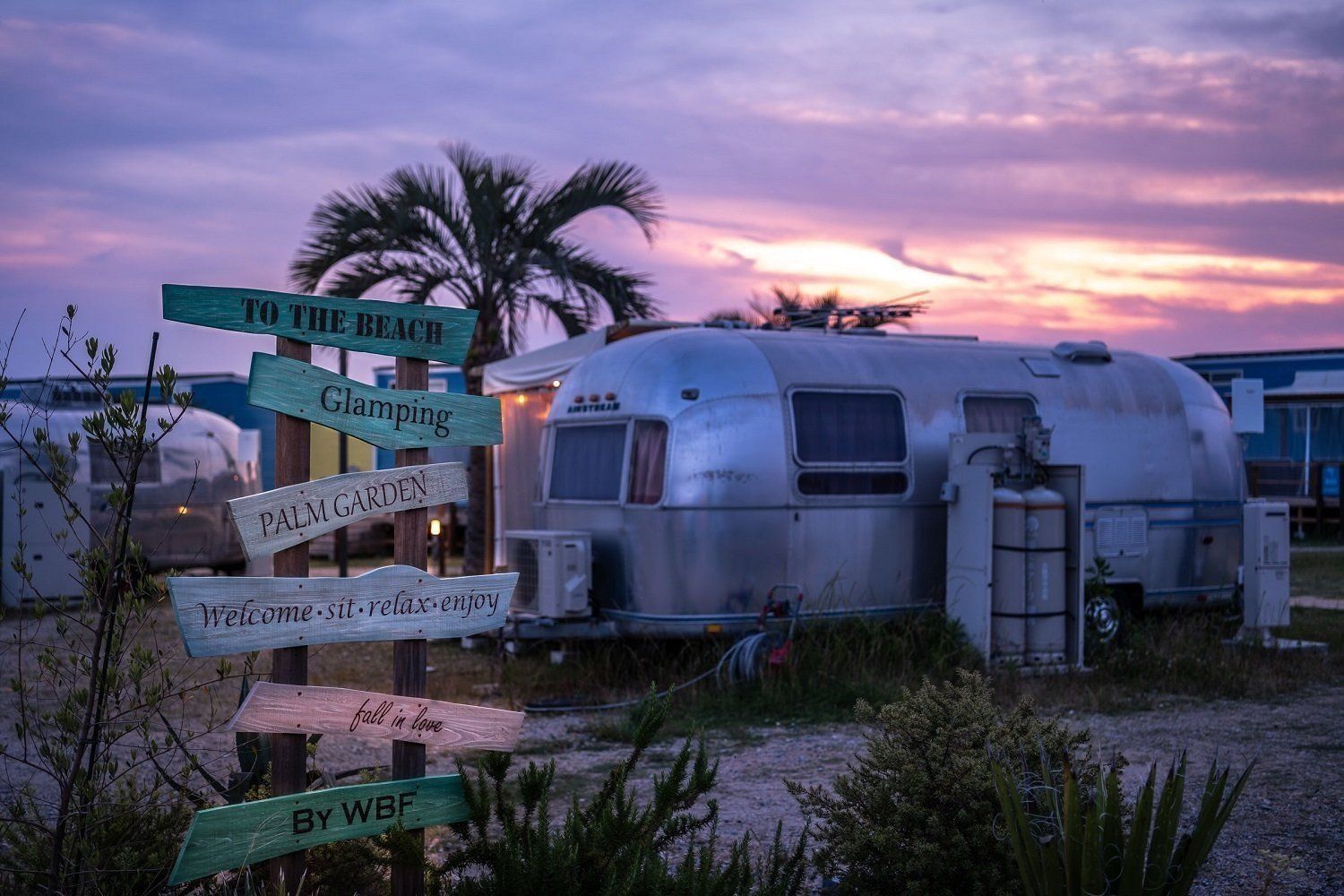大阪、舞洲にあるグランピング施設。キャンピングトレーラー「エアストリーム」を多く取りそろえています。大阪ベイエリアなので、電車やバスでアクセス可能。エアストリームはシャワー完備、トレーラーハウスはホテル並みのバス・トイレ完備で、水まわりも安心です。