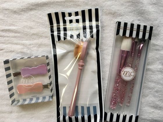 今回紹介したアイテムを並べてみました。これだけそろえても、価格は1,000円以下!このほかにも、スリーコインズ にはかわいくて機能的なメイクグッズが沢山あります。気になる人は、ぜひ店頭でチェックしてみてくださいね。