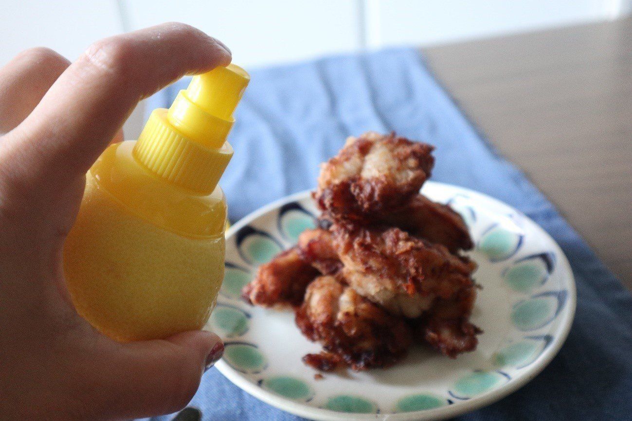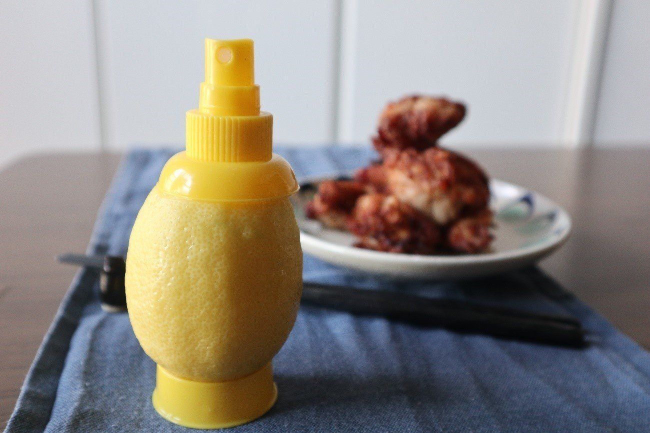 レモンをもんで上部をプッシュすると、果汁を霧状に出すことができます。ちょっと感動しちゃうくらい、ちゃんとレモンスプレーになっていますよ。これがあれば、揚げ物にレモンを絞りたいときなど、手を汚さなくてもいいのもうれしい!