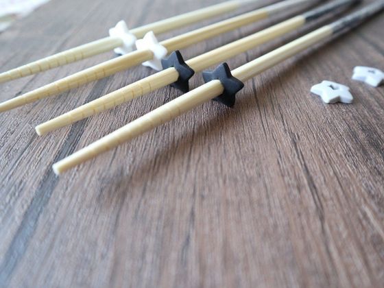 写真のように、星の中央に空いた穴に菜箸を差し込むと先端が浮くので、先端が下につかず衛生的で、キッチンを汚すこともないです。