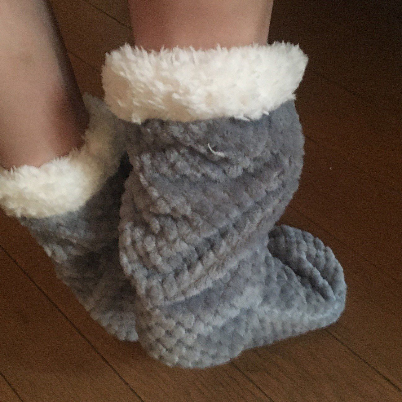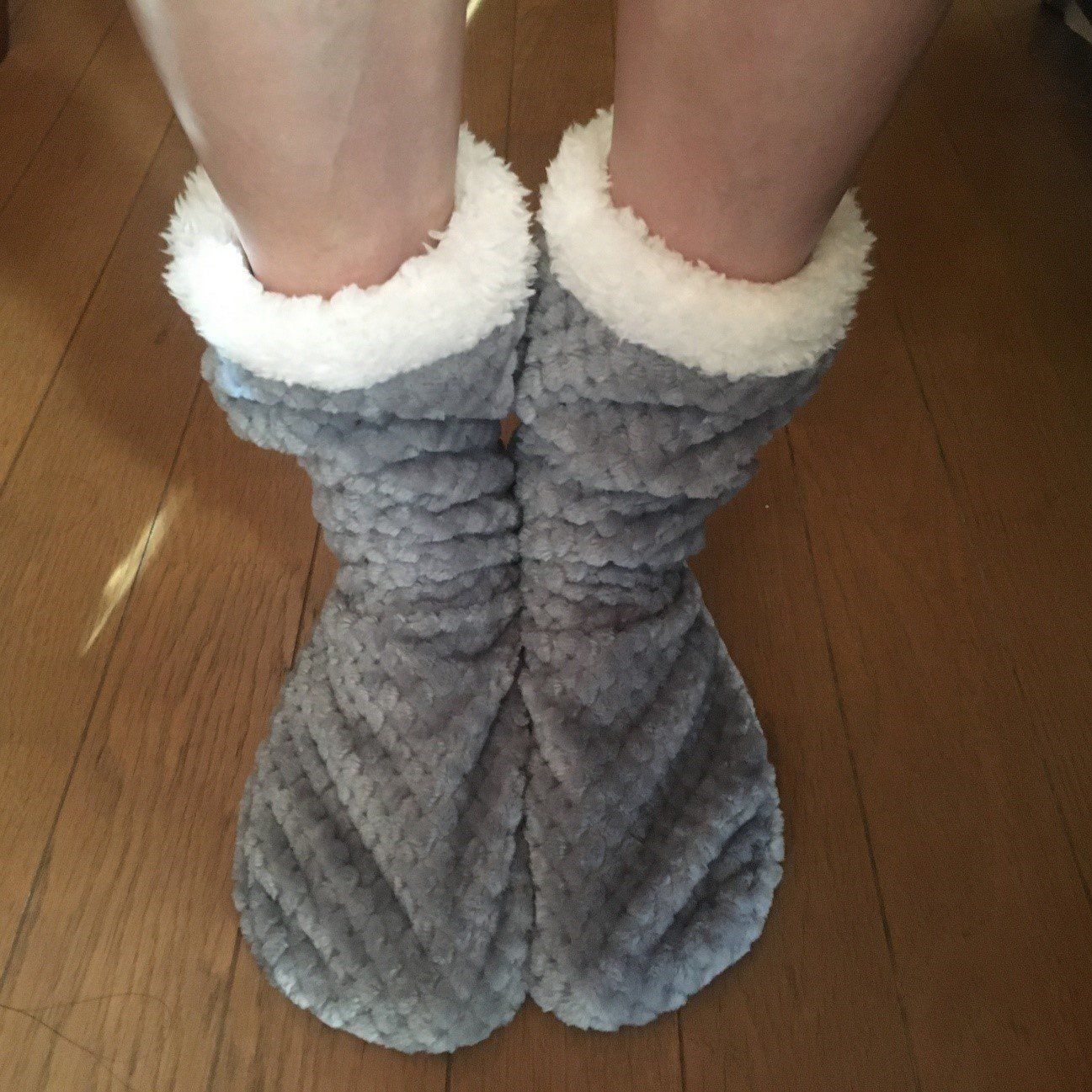 しばらく妻に履いてもらって、歩く姿を眺めていました。見ている側としては、部屋の中でブーツを履いているような印象で、ちょっと違和感も。ただ、履いている本人は、気にしていないから問題ありませんね。