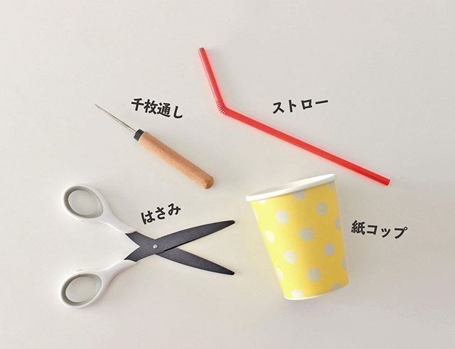 材料はすべて100均でそろいますし、つくり方も簡単ですからお子さんといっしょにつくっても楽しい思い出になりそうです。ハンドル部分は紙コップのフチを利用しています。