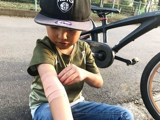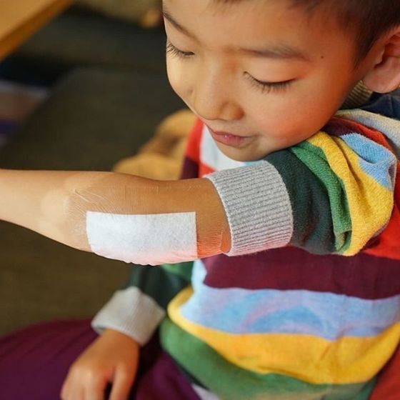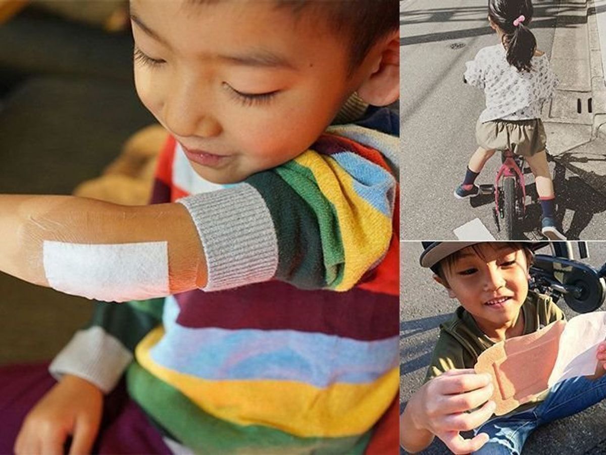 いつだって全力で笑って走っている息子。「危ないよ~!」ともちろん言うけれど、ゆる~く見守るタイプの私。そんなわけで息子はちょいちょい転ぶので絆創膏は必需品。小さな傷にも、絆創膏を貼ると心が落ち着くみたいなので、所々ペッタンしています。