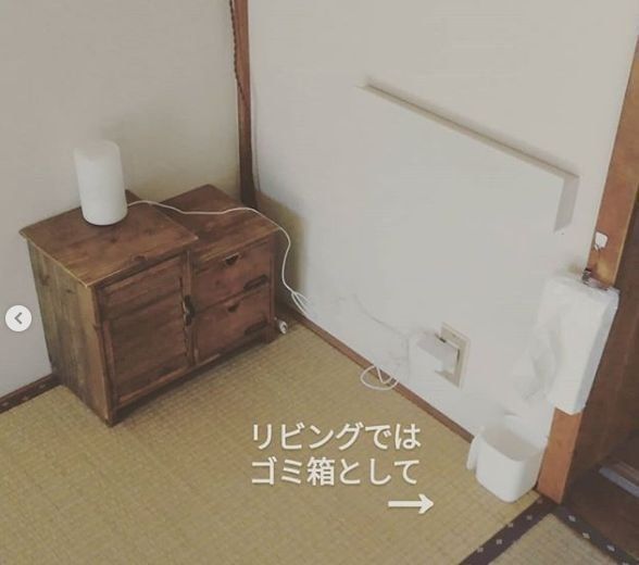 そしてリビングでは、小さなサイズのごみ箱として使うのにピッタリ!このサイズなら、脱衣所などのゴミ箱として使うのにもちょうどよいですね。いつも使っているゴミ箱のサイズが少し大きいかな?と感じているなら、この収納ボックスを使ってみても◎。