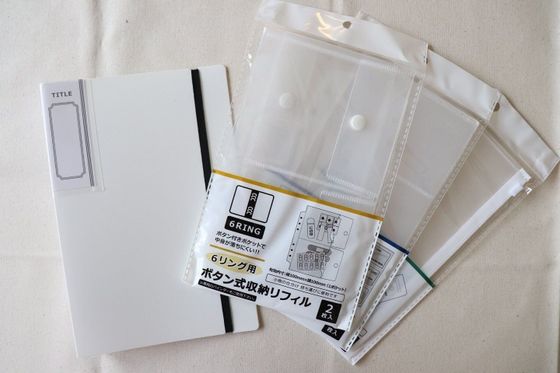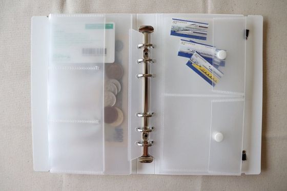 ボタンつきの収納リフィルは、切手やUSBなどの細々したものをしまっておくのに便利。家計管理として使わなくても、このリフィルだけを使ってお薬管理などもできそうです。