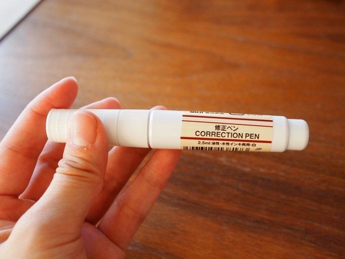 修正液が必要になったので無印良品で探してみました!やはりなんでもある!無印良品の修正ペン。価格は150円(税込)、無印良品週間だと135円(税込)でした!ちょっとミニサイズなので筆箱にも入りやすくてとてもよさそう!早速使ってみます!